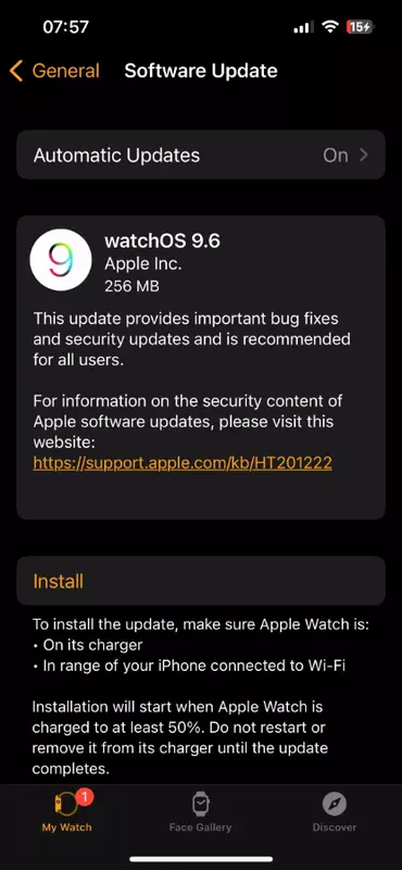 watchOS 9.6 wird bereits in Wellen an Smartwatches auf der ganzen Welt ausgerollt. Sie können die Verfügbarkeit von OTA in der Watch-App überprüfen.