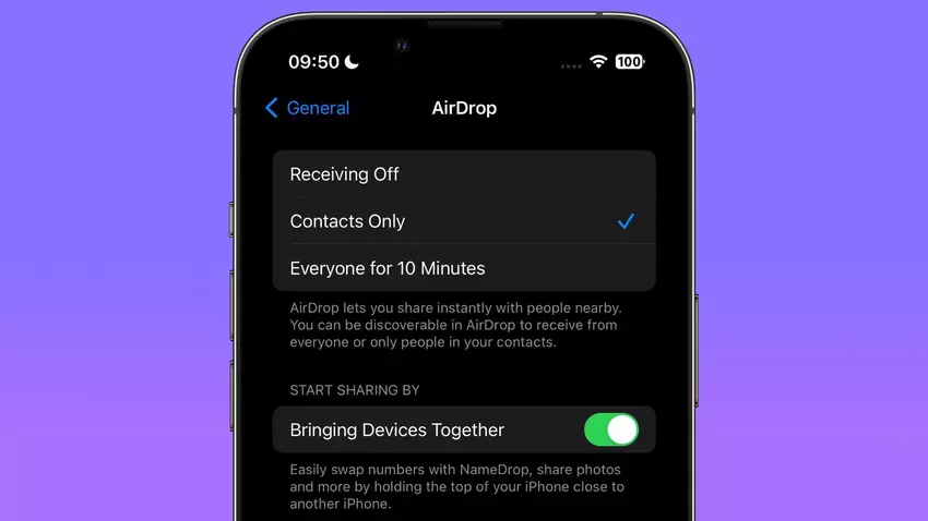 Ebenfalls in iOS 17 Beta 4 wurde dem AirDrop-Menü ein Abschnitt Freigabe starten durch hinzugefügt, der einen Schalter zum Zusammenführen von Geräten enthält. Er ermöglicht es Ihnen, NameDrop manuell ein- und auszuschalten.
