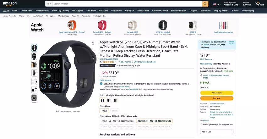 - Apple Watch SE (2nd Gen), 40mm - check price on amazon.