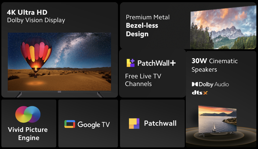 Die neuen Produkte arbeiten mit einem A55-Prozessor gepaart mit Mali G52 MP1-Grafik, 2 GB RAM und 16 GB Speicher. Die Fernseher verfügen über 802.11 ac Wi-Fi (2,4/5 GHz), Bluetooth 5.0, HDMI 2.1 mit eARC, USB, AUX und Ethernet-Anschlüsse. Die Geräte sind mit 30-W-Stereo-Lautsprechern ausgestattet. Sie unterstützen die Technologien Dolby Audio, DTS Virtual:X und DTS X. Die Fernseher werden mit dem Google TV-Betriebssystem und der PatchWall-Hülle ausgeliefert.