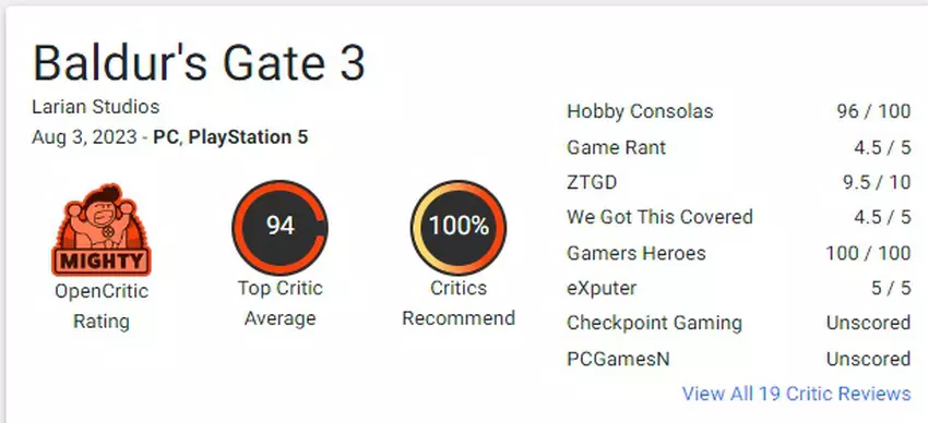 Derzeit gibt es nur sechs professionelle Kritiken auf Metacritic, und die durchschnittliche Punktzahl für das hochgelobte Rollenspiel liegt bei 95 Punkten!