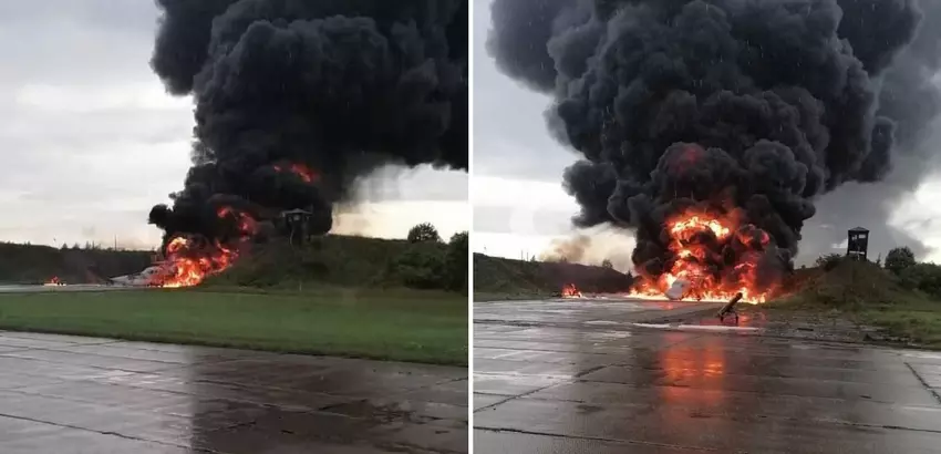 Es ist erwähnenswert, dass ähnliche Erklärungen vor zwei Tagen nach dem Angriff auf den Flugplatz Soltsy 700 Kilometer von der Ukraine entfernt abgegeben wurden. Am nächsten Tag tauchten jedoch Fotos von einem brennenden Tu-22M3-Bomber auf. Sie können sie unten sehen.