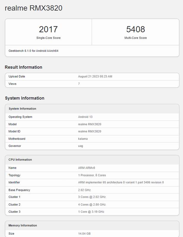 Im Vorfeld der Präsentation am 28. August wurde ein neues Realme-Smartphone in der Geekbench-Datenbank gesichtet.