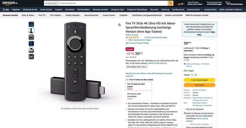Wenn Sie sich schon lange einen Fire TV Stick 4K Set-Top-Box zulegen wollten, ist jetzt die Zeit dafür gekommen. Das Gerät ist bei Amazon für check price on amazon im Angebot.