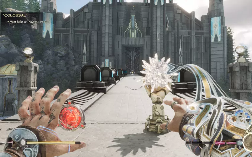 Das Spiel besteht aus einer halboffenen Welt, die in mehrere Orte unterteilt ist. Wenn du Star Wars Jedi oder God of War 2018 gespielt hast, wirst du mit diesem Konzept vertraut sein. Es gibt verschiedene Truhen, geheime Räume, Rätsel und andere Aktivitäten, die in der Welt verstreut sind. Es gibt jedoch keine zusätzlichen Aufgaben. Du kannst höchstens Portale mit Herausforderungen finden, aber dieses Spiel braucht keine zusätzlichen Quests. Im Allgemeinen haben all diese Aktivitäten nur ein Ziel: Ihnen neue Waffen oder Ressourcen zu beschaffen, das ist alles. Und man muss nicht stundenlang herumlaufen, um einen Ort zu 100 % abzuräumen. Es reicht aus, in die Ecken zu schauen und alle Truhen zu öffnen, die man sieht. Wenn Sie ein Rätsel sehen und sofort wissen, wie es zu lösen ist, tun Sie es, und Ihnen werden nicht die Ressourcen ausgehen oder Sie werden mit Waffen der Stufe eins herumlaufen. Und auch hier ergibt sich ein Paradoxon. Das Spiel scheint kein "Korridor"-Spiel zu sein, man kann so viel herumlaufen, wie man will, alles in der Welt einsammeln, alle Geheimnisse entdecken, aber andererseits macht Immortals of Aveum keine Lust, all das zu tun. Deshalb ist es auch nicht die beste Idee, einen Metroidvania-Shooter zu machen, aber dazu später mehr.