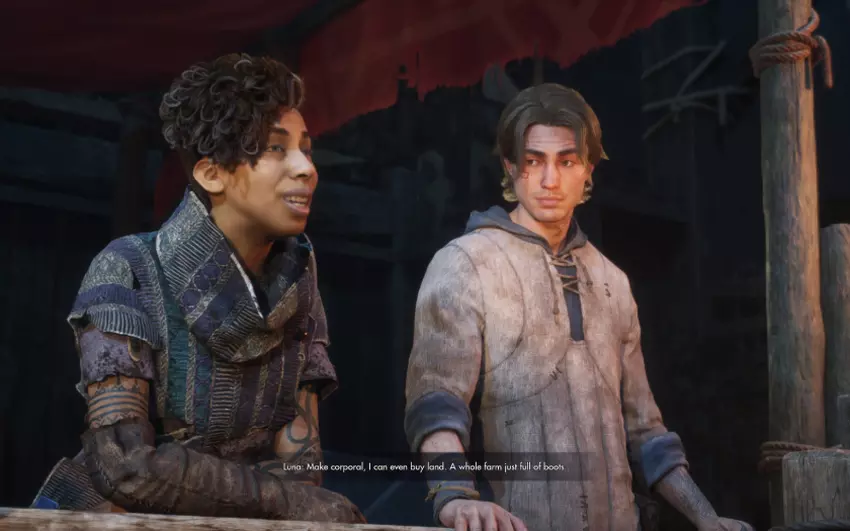 Die Autoren haben es geschafft, nicht nur eine interessante Spielwelt zu erschaffen, sondern auch die Ereignisse zu erklären, die sich hier abspielen. Das Wichtigste ist, dass man den Dialogen aufmerksam zuhört, um nichts zu verpassen. Hier findest du die Gründe für den ewigen Krieg, eine Beschreibung wichtiger Orte, eine Geschichte darüber, wie die Magie hier entstanden ist, und viele andere interessante Dinge. Und um die Überlieferungen zumindest oberflächlich zu verstehen, muss man nicht erst Notizen auf der Karte sammeln. Wichtige Informationen werden unabhängig voneinander in einem speziellen Journal aktualisiert, das eher wie Jaks persönliches Tagebuch ist. Und das hat seinen eigenen Vorteil: Wir lesen nicht die Geschichte eines Weisen, der sie vor Tausenden von Jahren geschrieben hat, sondern fühlen die Emotionen einer Person, die alles mit uns erfährt. Es ist klar, dass die Entwickler auf den historischen Inhalt von Aveum geachtet haben. Und deshalb kann die Handlung als "unrealisiertes Potenzial" bezeichnet werden, denn es gibt zwar eine interessante Handlung, aber das Ergebnis ist eine klischeehafte Geschichte über den Kampf zwischen Gut und Böse.