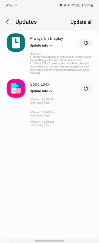 Die Anwendung wurde mit der Nummer 8.3.30.4 veröffentlicht und verbessert Always On Display für das Galaxy Flip 5 Clamshell. Zum Beispiel haben die Entwickler ein Problem behoben, das dazu führte, dass sich der Stil des Uhren-Widgets beim Roaming änderte. Das Update verbessert auch die Speichernutzung bei der Durchführung bestimmter Aktionen auf dem Bildschirm. Dies sollte die Laufruhe und die Akkulaufzeit des Smartphones im Ruhezustand verbessern.