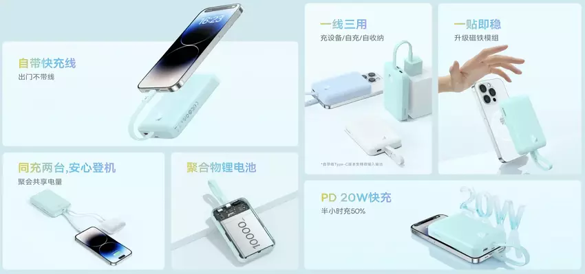 Die Neuheit hat kompakte Abmessungen, eine Kapazität von 10 000 mAh und ein integriertes USB-C-Kabel zum Aufladen von Gadgets. Der Akku ist außerdem mit einem USB-C-Anschluss und einer LED-Anzeige ausgestattet. Der Akku unterstützt magnetisches kabelloses Laden. Die maximale Leistungsabgabe des Geräts beträgt 20 W (über Kabel). Laut Hersteller kann die Powerbank den iPhone-Akku in 30 Minuten um 50 % aufladen.