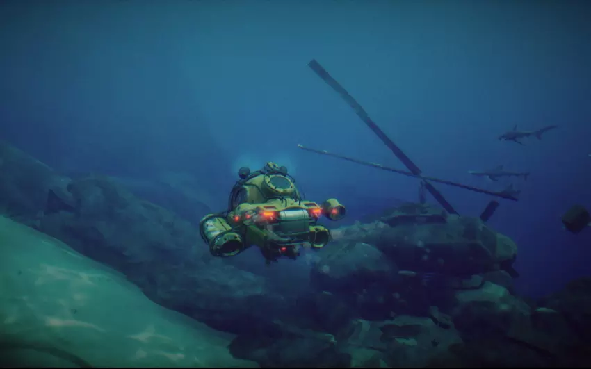 Wir haben Zugang zu einem bestimmten Gebiet an der Nordsee. Es ist groß genug, um innerhalb von 6-8 Stunden etwas Interessantes für sich zu finden. Und da es langweilig wäre, sich alleine in einem solchen Gebiet zu bewegen, haben wir ein Bathyscaphe, das Stan den Mond nennt. Es ist sehr einfach zu bedienen. Wenn du eine spezielle Taste auf dem Gamepad oder der Tastatur drückst, kannst du das Bathyscaphe besser manövrieren. Diese Funktion kommt zum Einsatz, wenn du zwischen engen Bereichen hindurchfahren musst.