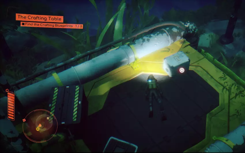 All diese drei Abteile sind durch einen kleinen Korridor verbunden, von dem aus man ins Wasser hinabsteigen kann. Außerdem gibt es ein Funkgerät, um Tim zu kontaktieren, einen KI-Assistenten Mercury, der versuchen wird, mit uns zu kommunizieren, und einen Bordcomputer, an dem wir Aufgaben erledigen können. Diese sind in zwei Arten unterteilt: Basis- und Routineaufgaben (analog zu den Zusatzaufgaben). Nachdem wir alle Aufgaben und Anweisungen von Tim erhalten haben, steigen wir von unserer Basis ab und die Hauptphase des Spiels beginnt.