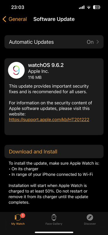 Das Update wurde mit der Build-Nummer watchOS 9.6.2 veröffentlicht. Das System wiegt 116 MB. Es wird bereits von Nutzern der unterstützten Apple Watch-Modelle auf der ganzen Welt empfangen. Sie können die Verfügbarkeit der Firmware in den Einstellungen der Uhr oder in der Watch-App auf dem iPhone überprüfen.