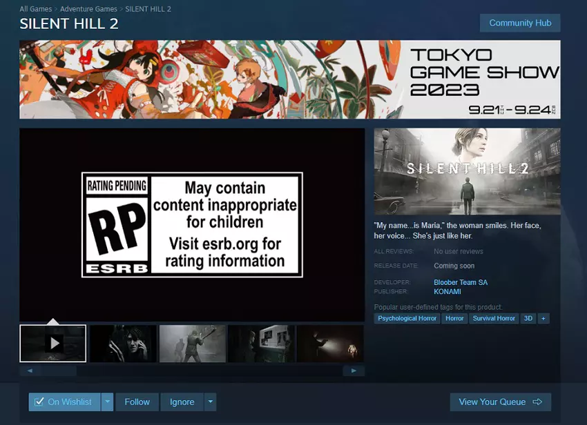 Auf der Seite von Silent Hill 2 Remake in Steam erschien ein Banner der Tokyo Game Show 2023, die vom 21. bis 24. September stattfinden wird.