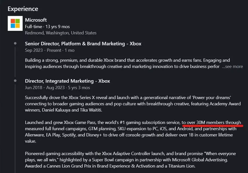 Umso überraschender ist es, dass der neue Senior Director of Global Brand and Integrated Marketing Xbox Craig McNary die Zahl der Game Pass Abonnenten veröffentlicht hat.