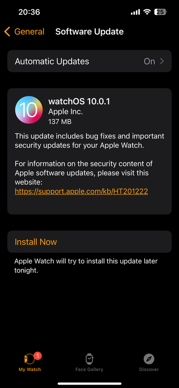 Die Firmware trägt die Build-Nummer watchOS 10.0.1 und wiegt etwa 140 MB. Das System wurde bereits in Wellen an alle unterstützten Apple Watch-Modelle verteilt.