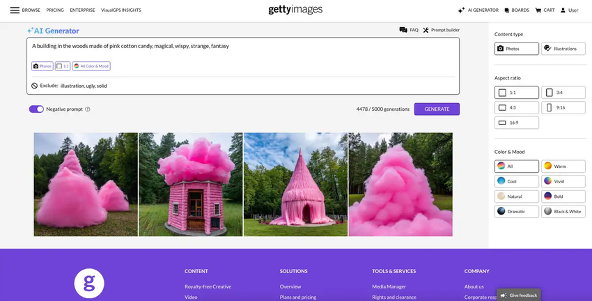 Die Schnittstelle von Gettys KI-Bilderzeugungstool