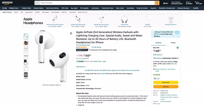 Neben dem iPad Air 5, sind die AirPods 3 auch für Rabatt auf Amazon gerade jetzt zur Verfügung. Das Modell kostet $133.98 $169.00, -21%.