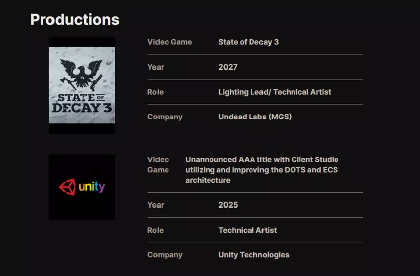 Den Medien ist aufgefallen, dass die Künstlerin Nora Shramek auf der professionellen Plattform ArtStation angegeben hat, dass die Veröffentlichung von State of Decay 3 für 2027 geplant ist.