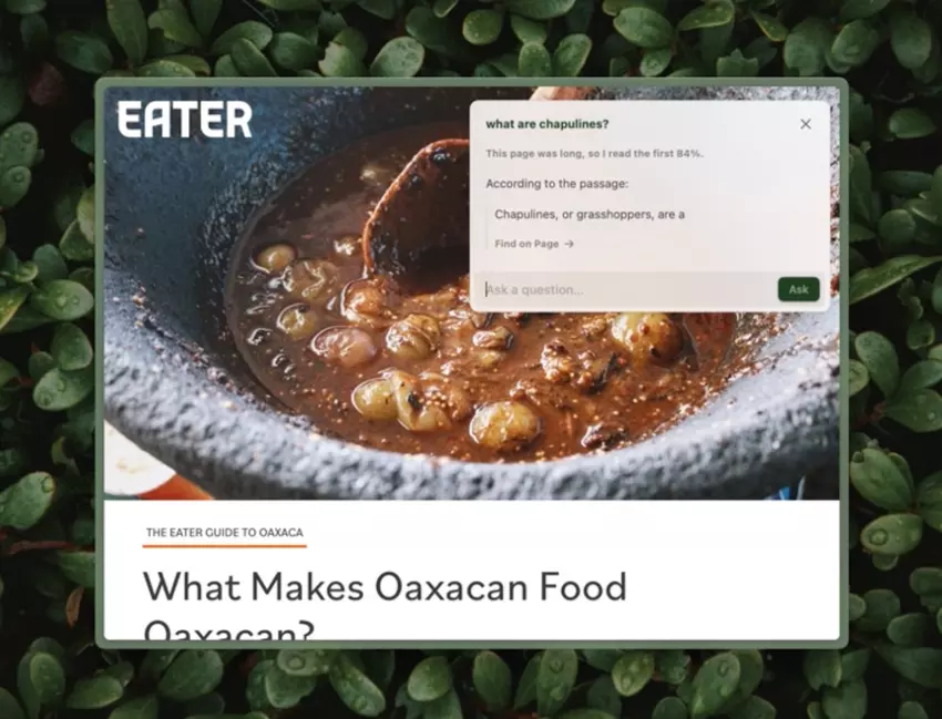 Wie bei anderen Browsern kann der Benutzer mit einem Chatbot chatten oder kontextbezogene Fragen zur aktuellen Seite stellen. Arc hat jedoch ein paar einzigartige Funktionen hinzugefügt: