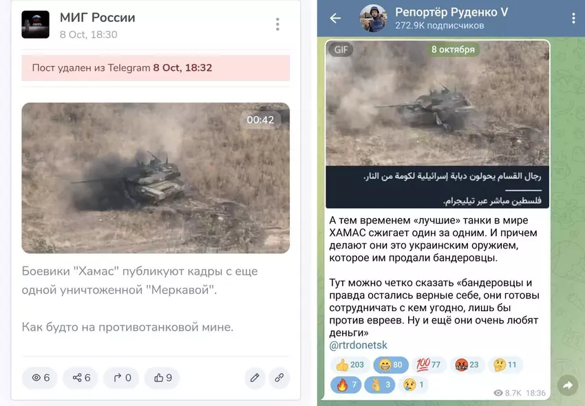 Vor kurzem haben wir einen Videoclip veröffentlicht, der die Zerstörung des modernisierten russischen Panzers T-90M "Breakthrough" in der Ukraine zeigt. Die Russen versuchten, dieses Material als Aufnahmen von der Zerstörung des Merkava IV in Israel auszugeben.