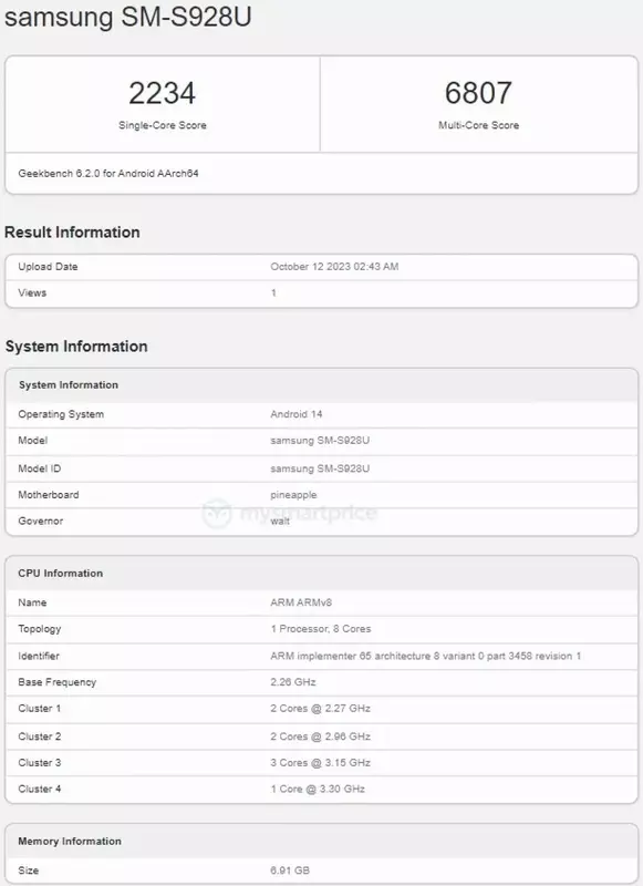 Was die Testergebnisse betrifft, so erreichte das Smartphone 2.234 Punkte im Single-Core- und 6.807 Punkte im Multi-Core-Bereich. Das sind 15 Prozent und 35 Prozent mehr als beim Galaxy S23 Ultra mit dem Snapdragon 8 Gen 2 Chip an Bord.