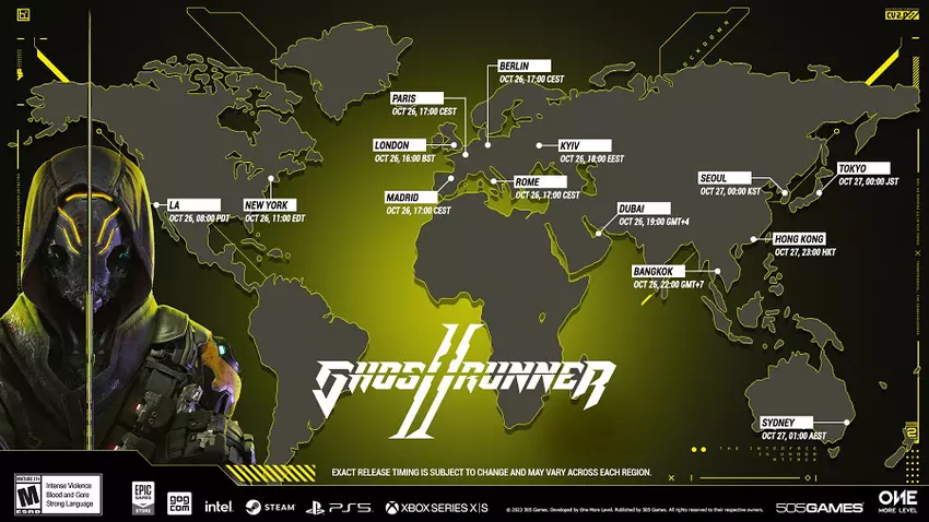 Es bleibt nicht mehr viel Zeit bis zur Veröffentlichung der Cyberpunk-Action Ghostrunner 2. Die Entwickler vom Studio One More Level und dem Verlag 505 Games haben eine visuelle Karte mit der genauen Zeit der Veröffentlichung des Spiels in den wichtigsten Zeitzonen veröffentlicht.