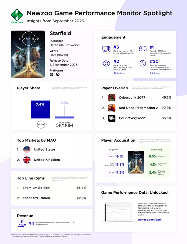 Das Analyseunternehmen Newzoo hat den Erfolg von Starfield im September 2023 analysiert.