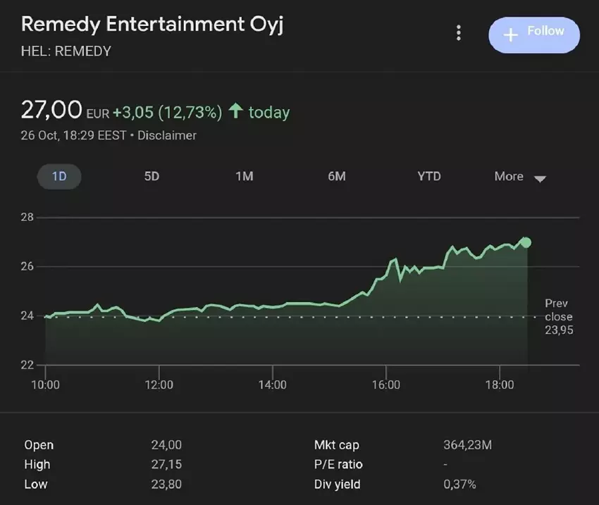 Aufgrund der erfolgreichen Veröffentlichung stieg der Aktienkurs von Remedy um fast 13 % und erreichte damit den höchsten Stand seit Juni 2022.
