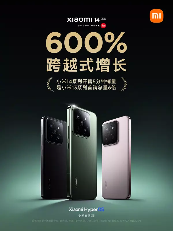 Das chinesische Unternehmen gab an, dass die Verkäufe der Xiaomi 14-Serie um 600% im Vergleich zu den Flaggschiffen Xiaomi 13 gestiegen sind, also um das Siebenfache. Außerdem dauerte es nur fünf Minuten, bis dies der Fall war.