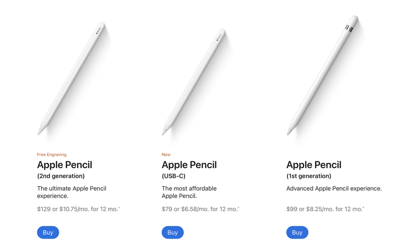 Der Apple Pencil (USB-C) ist bereits auf der offiziellen Website des Herstellers erhältlich. Die Neuheit kostet 79 Dollar. Übrigens sind auch der Apple Pencil der 2. Generation mit Lightning-Anschluss für 129 Dollar und der Apple Pencil der 1. Generation für 99 Dollar erhältlich.