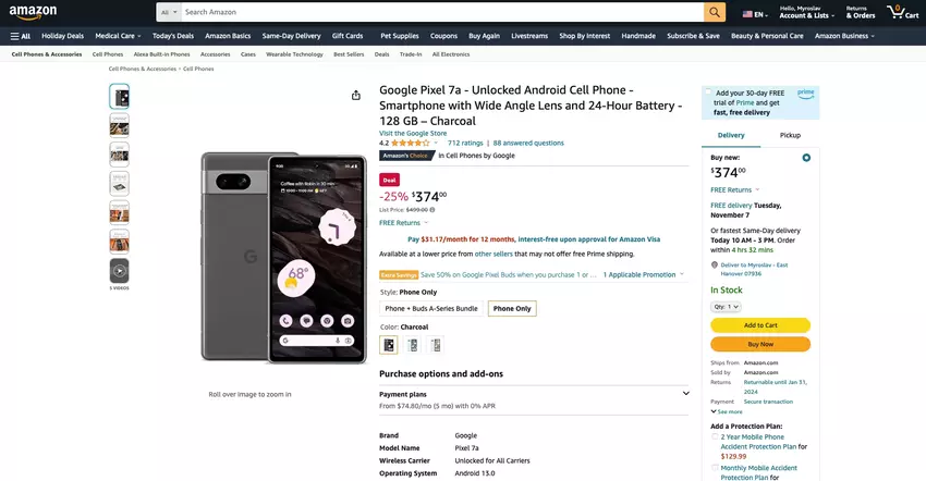 Angebot des Tages: Google Pixel 7a bei Amazon mit $125 Rabatt