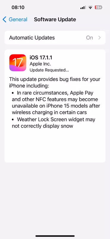 Was die Liste der Änderungen angeht, so enthält sie eine Reihe von Korrekturen. So haben die Entwickler beispielsweise das Problem mit dem Wetter-Widget auf dem Sperrbildschirm behoben. Außerdem hat Apple einen Fehler behoben, der dazu führte, dass das NFC-Modul im iPhone 15 nach dem kabellosen Laden in BMW-Fahrzeugen nicht mehr funktionierte.
