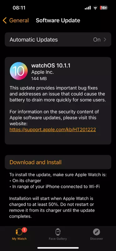 Die neue Version der Software trägt die Nummer watchOS 10.1.1.1. Die Firmware wiegt 144 MB. Das System kann bereits von Nutzern der unterstützten Apple Watch-Modelle installiert werden. Sie können das Vorhandensein der OTA in der Watch-App auf dem iPhone überprüfen.