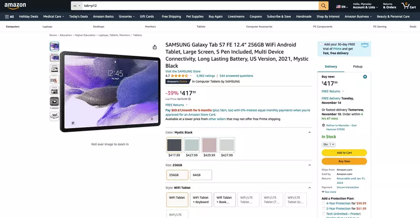 - Samsung Galaxy Tab S7 FE, 256 GB - $630.80 $670.18, -6% Rabatt.