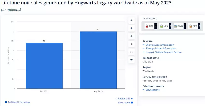 DieExperten von Statista haben errechnet, dass der Verkauf von Hogwarts Legacy 15 Millionen Exemplare erreicht hat.