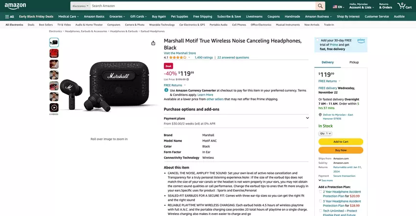 Marshall Motif auf Amazon: TWS-Kopfhörer mit ANC, Wasserschutz und bis zu 20 Stunden Akkulaufzeit für $80 weniger
