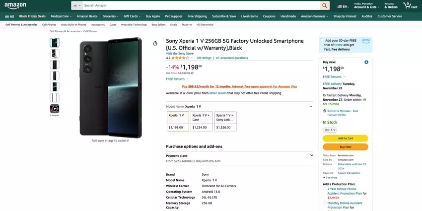 Black Friday bei Amazon: Sony Xperia 1 V Flaggschiff mit $201 Rabatt