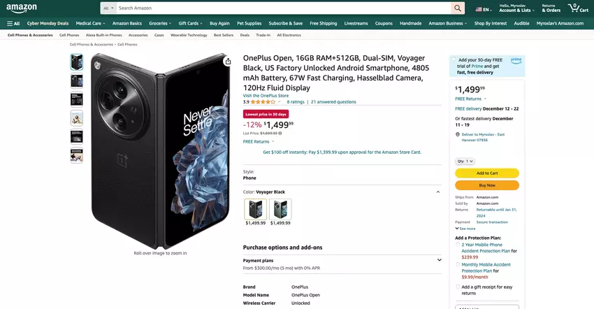OnePlus Open auf Amazon Cyber Monday Verkauf: faltbares Smartphone mit einem $200 Rabatt