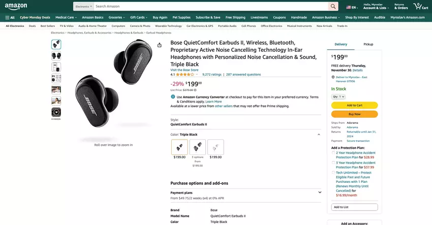 Bose QuietComfort Earbuds II auf Amazon Cyber Monday Verkauf: Flaggschiff TWS Kopfhörer mit $80 Rabatt