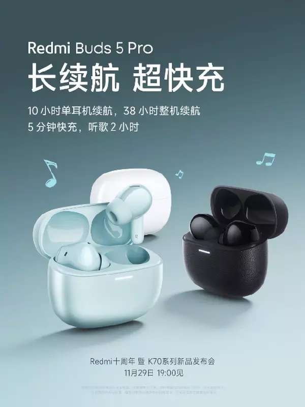 Die Redmi Buds 5 Pro werden am 29. November in China auf den Markt kommen.