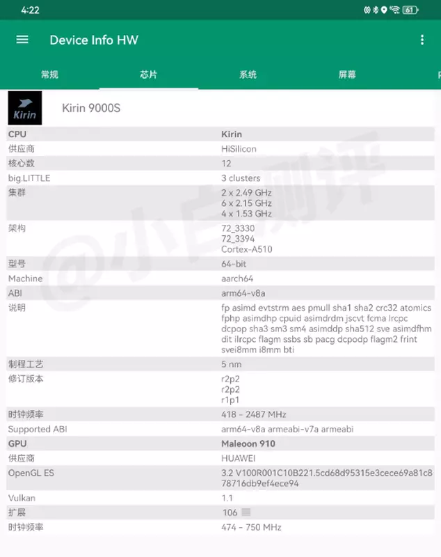 Journalisten, die die Testgeräte erhielten, installierten die Anwendung Device Info HW auf dem Tablet und erfuhren, dass das Gerät mit dem Flaggschiff-Prozessor Kirin 9000s läuft. Derselbe SoC ist in der Huawei Mate 60-Reihe von Smartphones installiert. Der Chip wird in einem 7-Nanometer-Verfahren hergestellt. Er hat eine Kerntaktrate von 1,53-2,49 GHz, ein integriertes 5G-Modem und eine Maleoon 910-Grafik.