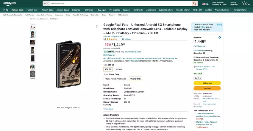 Google Pixel Fold mit 256 GB Speicherplatz bei Amazon mit $350 Rabatt erhältlich