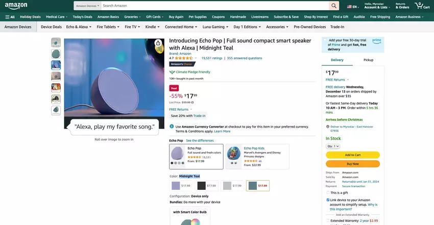 Amazon verkauft Echo Pop mit einem Rabatt von 22 Dollar: ein intelligenter Lautsprecher mit Alexa-Sprachassistent