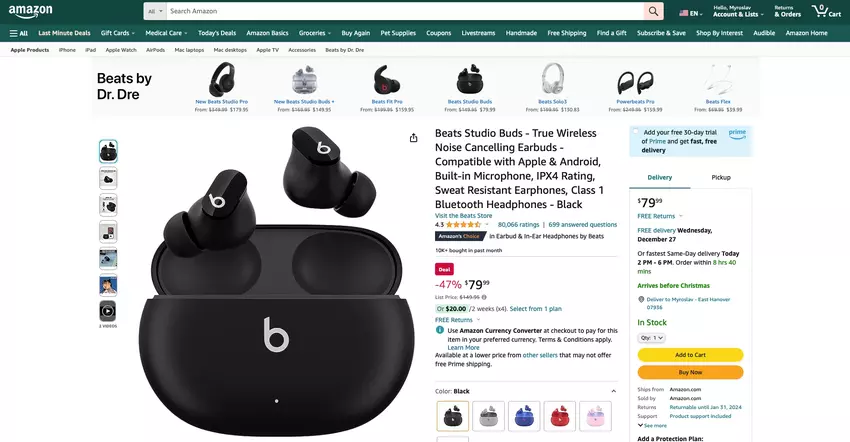 Angebot des Tages: Beats Studio Buds mit ANC können bei Amazon mit einem Rabatt von 70$ gekauft werden