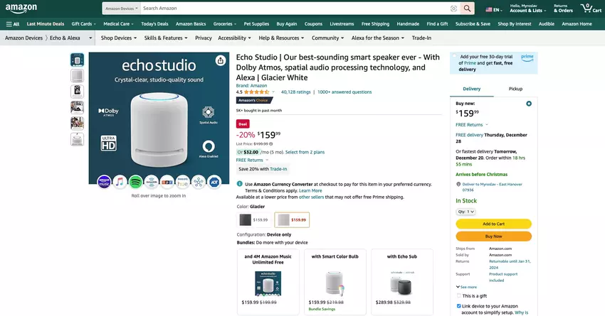Amazon Echo Studio mit Spatial Audio-Surround-Sound-Unterstützung kann mit einem Rabatt von 40 US-Dollar erworben werden