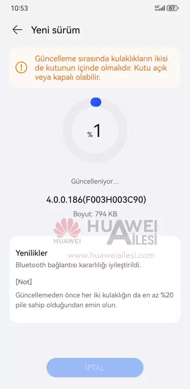 Die neue Softwareversion wurde mit der Build-Nummer 4.0.0.0.186 veröffentlicht. Das System wiegt nur 794 KB. Laut der offiziellen Liste der Änderungen hat Huawei die Bluetooth-Konnektivität in FreeClip verbessert. Das Update bringt keine neuen Funktionen mit sich.