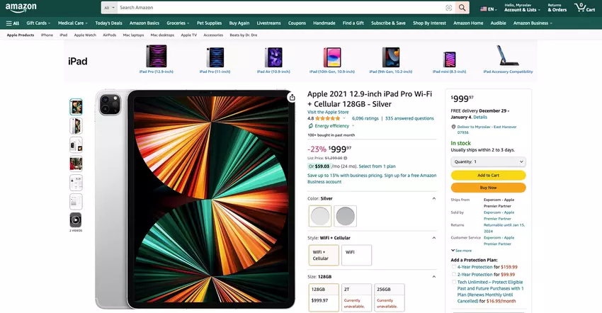 Wir sprechen über das iPad Pro 2021. Das Modell mit 5G-Unterstützung und 128 GB Speicherplatz kostet $1,484.95.