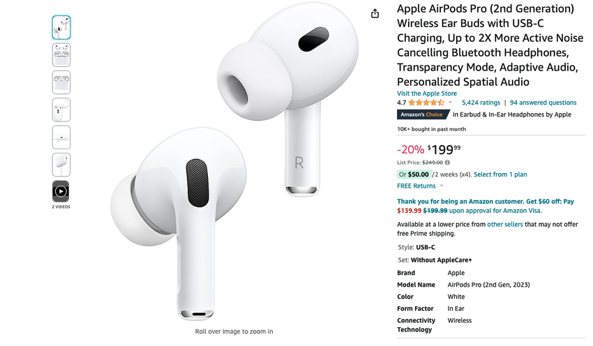 Die Rede ist von den AirPods Pro der 2. Generation mit USB-C-Anschluss. Die Kopfhörer kosten $234.76 $249.00, -6%.