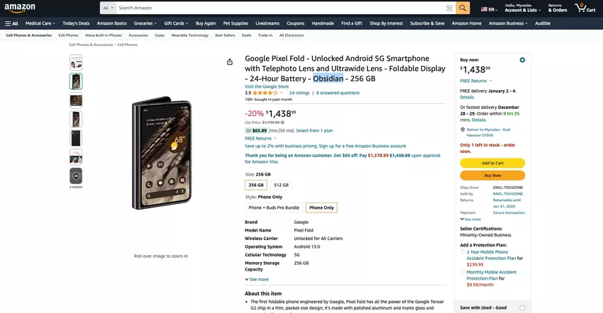 Der beste Preis: Google Pixel Fold erhältlich bei Amazon für 361 $ Rabatt