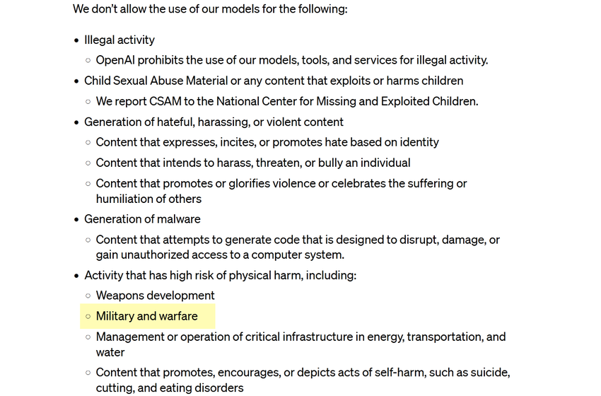 OpenAI hob ohne Ankündigung ein vollständiges Verbot der militärischen und kämpferischen Nutzung von KI auf
