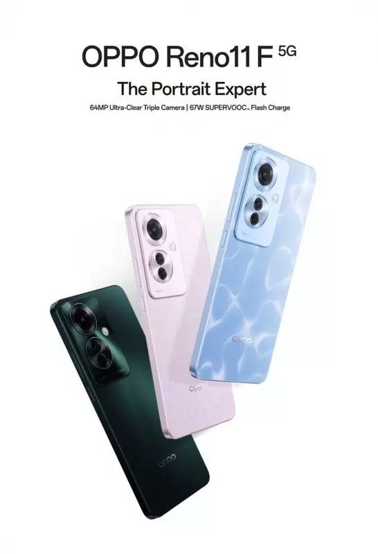 Laut Gerüchten handelt es sich um das Modell OPPO Reno 11F 5G. Die Neuheit wird in drei Farben auf den Markt kommen: grün, pink und blau. Das Gerät wird ein AMOLED-Display mit einer Auflösung von FHD + und einer Bildwiederholrate von 120 Hz erhalten. Die Neuheit wird mit einem Fingerabdruckscanner unter dem Bildschirm und einer 32 MP Frontkamera ausgestattet sein. Die Hauptkamera wird drei Sensoren mit 64 MP (OV64B) + 8 MP (IMX355) + 2 MP (Makro) haben.